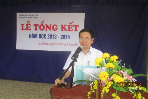 Thầy hiệu trưởng Nguyễn Mạnh Dũng báo cáo tổng kết năm học.