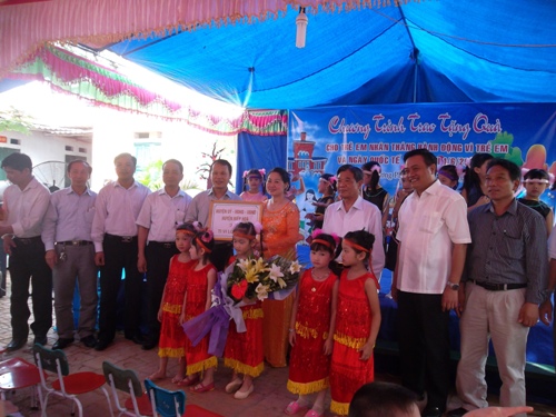 Cũng tại đây, các đồng chí lãnh đạo Tỉnh, Huyện, xã đã động viên và chúc các cháu có một cái tết thiếu nhi thực sự vui vẻ, đầm ấm, hạnh phúc.