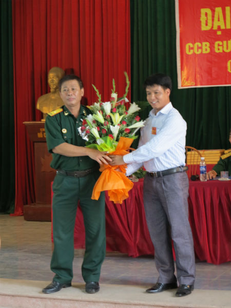 Đồng chí Bạch Quang Hào, Bí thư Đảng uỷ phát biểu và tặng hoa chúc mừng.