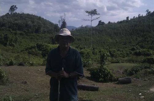 Chú thích ảnh: Chỗ tôi đứng có thể là khu Bếp và Nhà ăn của Bệnh xá CK120 trước đây, vì nay còn dấu tích của bếp Hoàng Cầm. Phía trước cách khoảng 80 mét, thấp hơn bên cạnh con suối nhỏ có thể là khu nhà điều trị. Phía sau cách khoảng 200 mét, sườn đồi bên trên cây dầu cao là nơi chôn cất các LS đã hy sinh tại XK120.