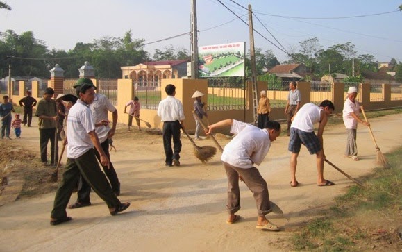 Vệ sinh môi trường đường làng ở khu trung tâm văn hóa thôn Tân Hiệp