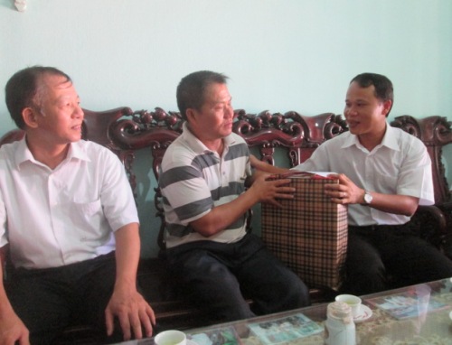 Cùng đi với đoàn còn có đồng chí Chu Quang Hiển- phó chủ tịch HĐND huyện, trưởng Ban tổ chức Huyện ủy, đồng chí Đinh Xuân Hiệu- Trưởng phòng lao động, thương binh và xã hội huyện.