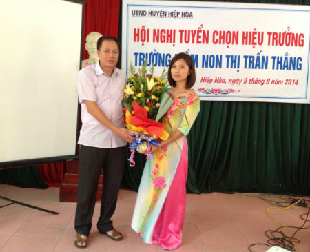 Tham dự thi tuyển có 2 ứng viên, gồm La Thị Bình và Nguyễn Thị Thành đều là Phó Hiệu trưởng trường Mầm non thị trấn Thắng. Các ứng viên đã trình bày chương trình hành động xây dựng và phát triển đơn vị, trả lời các câu hỏi của hội đồng tuyển chọn của huyện.
