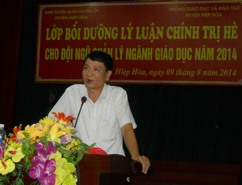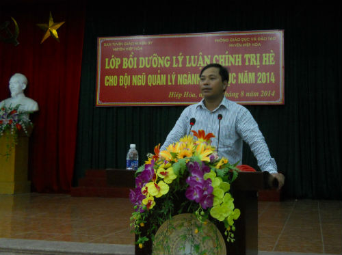 Chiều 9/8, tại Hội trường Nhà văn hóa huyện, Phòng Giáo dục và Đào tạo chủ trì, phối hợp với Ban Tuyên giáo Huyện ủy tổ chức Hội nghị bồi dưỡng chính trị hè cho cán bộ quản lý ngành giáo dục huyện Hiệp Hòa năm 2014. Tham gia hội nghị bồi dưỡng có đồng chí Lê Đình Dũng-Trưởng phòng thông tin công tác tuyên giáo – Ban Tuyên giáo tỉnh ủy (báo cáo viên), đại diện Ban Tuyên giáo Huyện ủy, lãnh đạo và chuyên viên Phòng GD&ĐT, các nhà trường có Bí thư Chi bộ, Hiệu trưởng, Phó Hiệu trưởng và Chủ tịch công đoàn của 95 trường trong toàn huyện.