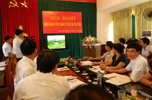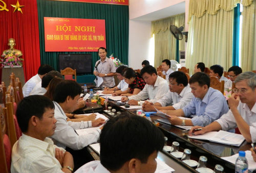 Sáng 25/8, Thường trực Huyện ủy tổ chức Hội nghị giao ban với Bí thư Đảng ủy các xã, thị trấn. Đến dự có đồng chí Dương Quang Thanh, Phó Ban dân vận tỉnh ủy; các đồng chí thường trực huyện ủy, lãnh đạo UBND huyện, thủ trưởng các cơ quan xây dựng Đảng, chủ tịch UBMTTQ huyện, trưởng các đoàn thể chính trị- xã hội; Bí thư đảng ủy các xã, thị trấn. Đồng chí Mai Sơn, TUV, Bí thư huyện ủy chủ trì hội nghị.