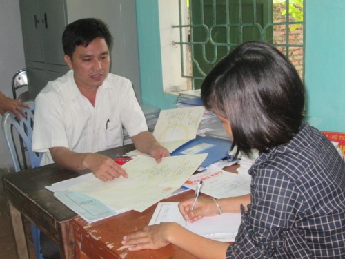 Cán bộ xã Đại Thành hướng dẫn nhân dân làm thủ tục về đất đai