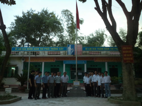 Đến dự lễ trao tặng cột cờ có đồng chí Ngô Văn Can- Bí thư Đảng ủy xã, đồng chí Nguyễn Văn Quý- Phó BT Đảng ủy xã, đồng chí Hoàng Văn Lịch- Chủ tịch UBND xã, đồng chí Ngô Thị Bình- Phó Chủ tịch UBND xã, đồng chí Phạm Văn Toàn- Phó Chủ tịch UBND xã và các bác trong ban đại diện cha mẹ học sinh của trường. Các đồng chí đã đánh giá cao giá trị của cột cờ và ý nghĩa của việc làm là rất thiết thực. Các thầy giáo đã thúc đẩy công tác xã hội hóa giáo dục xã nhà đi lên và coi đây chính là những tấm gương, những việc làm điển hình cho các tổ chức xã hội, các cá nhân trong và ngoài xã noi theo. Phát huy công tác xã hội hóa giáo dục của xã nhà là kịp thời động viên các em học sinh phấn đấu vươn lên trong học tập, tiếp nối truyền thống hiếu học của cha anh.
