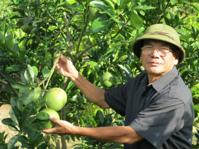Xế chiều, nhà ông, người ra vào mua bưởi tấp nập để mang đi bán tại Quảng Ninh. Dẫn tôi ra sau vườn bưởi trĩu trịt quả, ông kể cho nghe lai lịch của từng loại cây ăn quả mà ông đã sưu tầm, mua về trồng tại vườn nhà; nào vải, bưởi, na, hồng, nhãn… được ông “nhân bản” chăm sóc, nay đang vào mùa thu hái. Chỉ với 2 mẫu vườn, mùa nào thứ ấy, các loại cây ăn quả: vải thiều, nhãn, bưởi, mỗi năm cho ông nguồn thu hoạch hàng trăm triệu đồng.