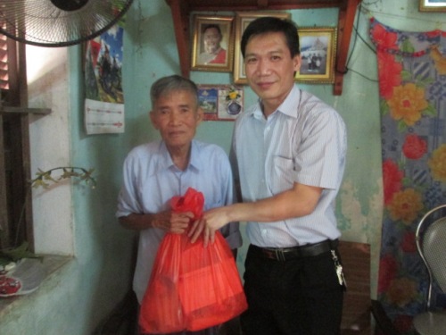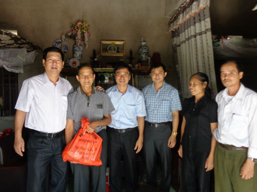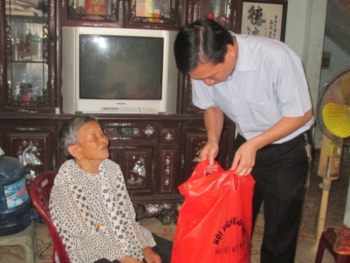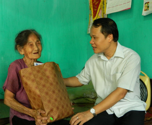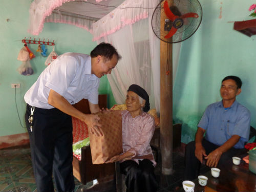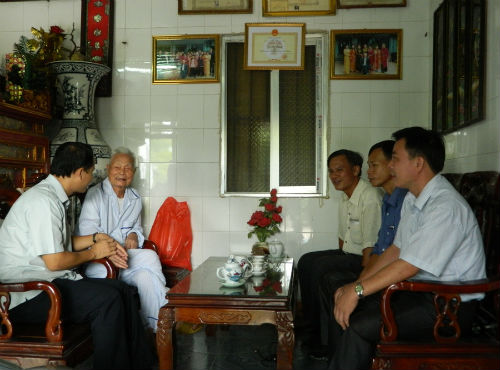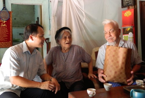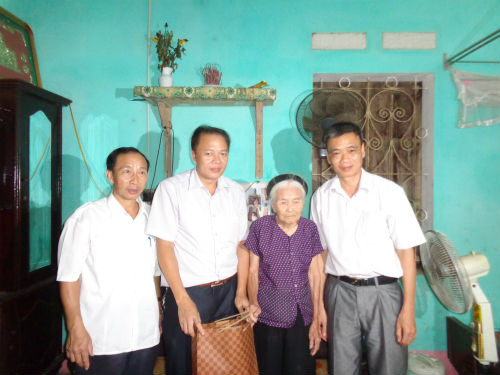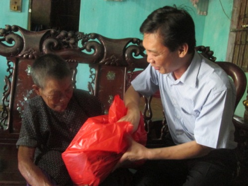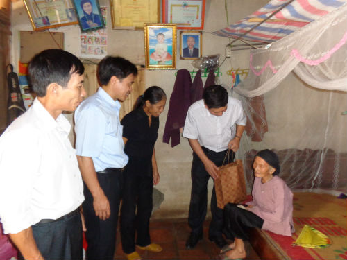Đồng chí Mai Sơn- Bí thư Huyện ủy thăm, tặng quà các cụ cao tuổi xã Đức Thắng