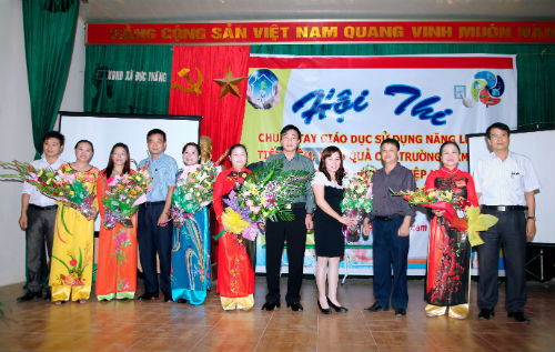 Đồng chí Phạm Văn Nghị- Trưởng phòng GD&ĐT huyện tặng hoa hội thi