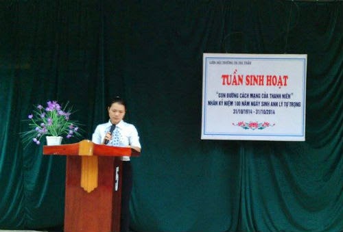 Cô giáo Lan Anh- TPT Đội đã chính thức phát động một đợt thi đua mới, với nhiều nội dung phong phú,hưởng ứng Tuần sinh hoạt :” Con đường cách mạng của thanh niên ” nhân kỷ niệm 100 năm ngày sinh Anh Lý Tự Trọng.