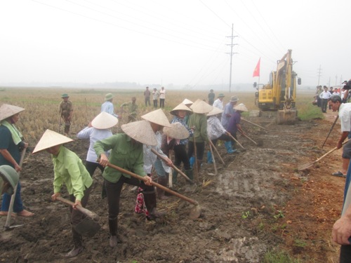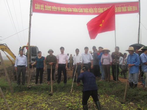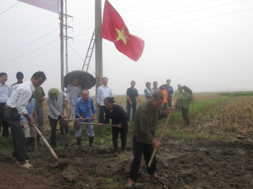 Chủ tịch UBND huyện Nguễn Thị Hoa dự lễ ra quân tại thôn Cấm, Lương Phong.