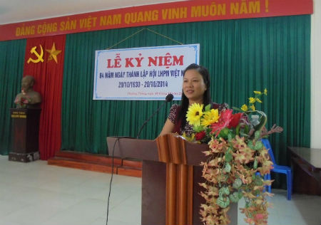 Chị Nguyễn Thị Oanh- Chủ tịch HLHPN xã Thường Thắng đọc diễn văn