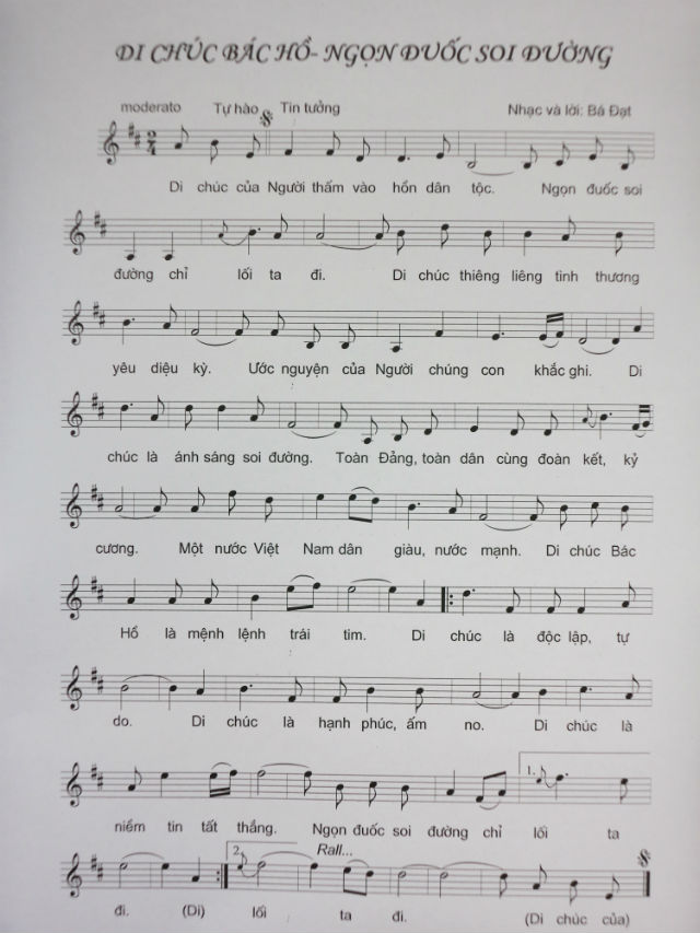 Nhân kỷ niệm 45 năm thực hiện Di chúc của Bác Hồ, nhạc sỹ Bá Đạt viết ca khúc DI CHÚC BÁC HỒ – NGỌN ĐUỐC SOI ĐƯỜNG như một sự bày tỏ lòng kính trọng và biết ơn sâu sắc đến Chủ tịch Hồ Chí Minh kính yêu của chúng ta.