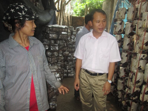 ĐC Bí thư Huyện ủy thăm mô hình trồng nấm ở xã Hoàng An