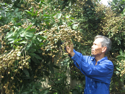 Đại tá Ngô Trọng Phú bên vườn nhãn.