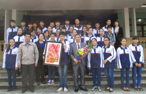 Nhân dịp này các đồng chí lãnh đạo địa phương đã tặng hoa và chụp ảnh lưu niệm với các nhà trường.