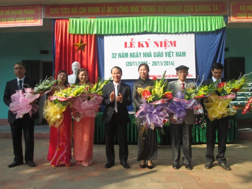 Hôm nay, 20- 11, huyện Hiệp Hòa tưng bừng trong Ngày Nhà giáo Việt Nam. Đồng chí Lại Thanh Sơn- Phó chủ tịch UBND tỉnh Bắc Giang, đồng chí Mai Sơn- Bí thư Huyện ủy, đồng chí Vũ Chí Kỳ Phó BT Thường trực- Chủ tịch HĐND huyện, các đồng chí TT HĐND huyện, Chủ tịch UBND, PCT UBND huyện và lãnh đạo một số ban, ngành trong huyện đã đến dự, tặng hoa chúc mừng các thầy cô giáo ở một số nhà trường. Được biết lãnh đạo huyện phân công thành 07 đoàn đến thăm chúc mừng các nhà trường trên địa bàn huyện;