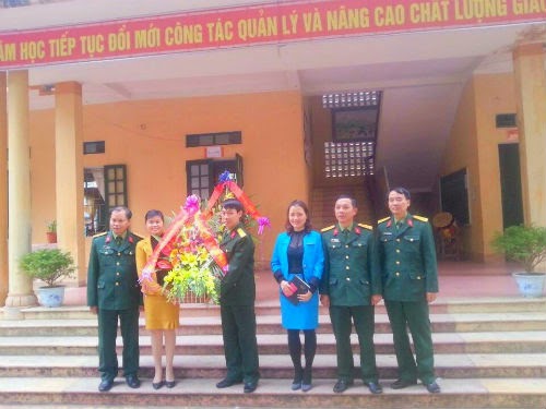 Và cũng nhân dịp này, cán bộ chiến sỹ Phòng Kỹ thuật Lữ đoàn 675- đơn vị kết nghĩa với nhà trường cũng đến tặng hoa chúc mừng các cô giáo trường tiểu học Thị trấn.