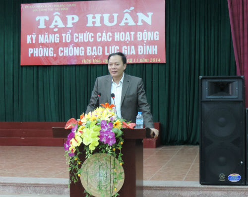 Ngày 22/11, tại hội trường nhà văn hóa huyện Hiệp Hòa, Sở VHTT&DL tỉnh phối hợp với Phòng VH&TT huyện tổ chức lớp tập huấn kỹ năng tổ chức các hoạt động phòng, chống bạo lực gia đình năm 2014.