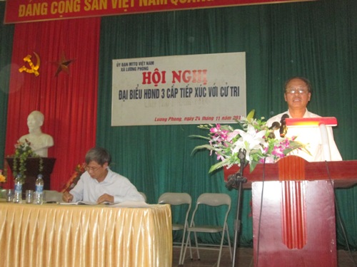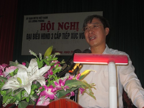 Sáng ngày 24/11,Đoàn Đại biểu HĐND tỉnh Bắc Giang thuộc khu vực huyện Hiệp Hòa đã có buổi tiêp xúc với cử tri xã Lương Phong và xã Đông Lỗ; Cùng dự ở Lương Phong có đồng chí Mai Sơn Đại biểu HĐND tỉnh Bí thư Huyện ủy, đồng chí Nguyễn Hữu Chính, phó chủ tịch HĐND huyện, đồng chí Nguyễn Văn Chính, phó chủ tịch thường trực UBND huyện; Dự tại xã Đông Lỗ có đồng chí Nguyễn Thị Hoa Đại biểu HĐND tỉnh, Đ/c Vũ Chí Kỳ Phó BT, CT HĐND huyện, lãnh đạo UBMTTQ huyện và các ông bà là đại biểu HĐND tỉnh, huyện và xã.
