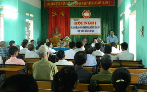 Lãnh đạo xã và cử tri thôn Tân Sơn dự tiếp xúc cửtri