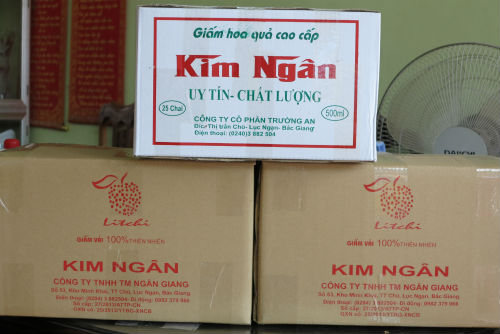 Dẫn khách đi thăm khu sản xuất giấm, xem những dãy nhà dài sản xuất và kho chứa nguyên liệu, đủ các loại thùng lên men giấm. Anh Nguyễn Trường Giang, chồng Kim Ngân cho biết: Đối với người dân trồng vải, để có được những quả vải thơm ngon vô cùng vất vả nhưng luôn phải phụ thuộc vào thị trường, giá cả rất bấp bênh. Em muốn tạo một sản phẩm giấm từ quả vải thiều của quê hương. Ngoài đặc sản vải tươi, vải khô, còn thêm một sản phẩm giấm vải thơm ngon có mặt trong bữa ăn hàng ngày, đó cũng là niềm vui cho người quê vải. Khi nhận được những phản hồi, những đơn đặt hàng, em hạnh phúc đến nghẹn ngào, rất vui khi sản phẩm đã được mọi người đón nhận. Em nghiên cứu tất cả các loại quả từ táo, xoài ,thanh long ,hồng xiêm, nho…Mỗi loại có mùi vị đặc trưng, nhưng thấy khách hàng phản hồi thích giấm vải nhiều, khi đã dùng rồi không muốn dùng các sản phẩm khác. Hiện nay em đang làm 2 loại sản phẩm chính là giấm vải và giấm táo. Em muốn đưa ra thị trường dòng sản phẩm sạch, an toàn, giá cả phù hợp với thu nhập của người Việt Nam. Nhưng mọi người đừng nghĩ rẻ là không chất lượng.