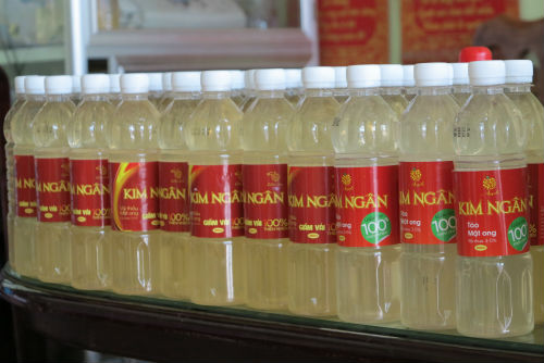 Với phương pháp lên men tự nhiên, theo phương thức công nghệ của Pháp, lên men tĩnh cho ra một loại giấm rất thơm ngon và có lợi cho sức khoẻ. Sản phẩm có tên: giấm Kim Ngân của Công ty cổ phần Trường An – Khu Minh Khai, thị trấn Chũ, Lục Ngạn, Bắc Giang. ĐT; (0240) 3882.504. Bao bì đóng hộp, chai 500ml.