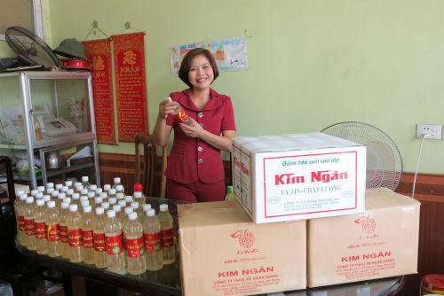 Kim Ngân là giáo viên hoá-sinh của Trường THCS thị trấn Chũ, huyện Lục Ngạn, với bao suy tư trăn trở cùng với đầu ra của quả vải, mục đích góp phần giúp ổn định dần thị trường trong nước, bớt phụ thuộc vào thị trường nước ngoài không ổn định về giá cả, vừa tiết kiệm chi phí, bởi là nguyên liệu sản xuất tại chỗ, vừa giải quyết việc làm cho hàng chục lao động thời vụ; thêm một hướng đi, một đầu ra cho quả vải quê mình. Kim Ngân đã mạnh dạn cùng chồng đầu tư vào công việc sản xuất giấm. Với nguyên liệu đơn giản là cùi vải, mật ong nguyên chất, nước sạch, đường và lên men giấm, đã cho ra một loại giấm thơm ngon. Hiện, giấm Kim Ngân đã có mặt ở nhiều thị trường trong tỉnh và nhiều tỉnh thành như Bắc Ninh, Hà Nội, Hải Phòng, Lạng sơn… Thị trường nhiều nơi trong nước đón nhận và đặt hàng ngày một tăng dần.