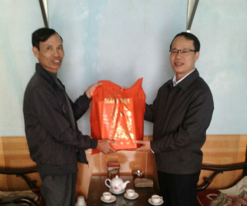 Đồng chí Bí thư Huyện ủy tặng quà.