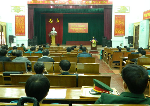 Phát biểu tại hội nghị, đại tá Nguyễn Đức Năng, Phó tham mưu trưởng, Bộ CHQS tỉnh; đồng chí Nguyễn Thị Hoa, Chủ tịch UBND huyện CHQS huyện, UBND huyện đã ghi nhận, biểu dương những kết quả tích cực trong công tác quân sự địa phương. Đồng thời, nhấn mạnh một số nội dung cần triển khai thực hiện trong thời gian tới, nhằm thực hiện thắng lợi nhiệm vụ công tác quốc phòng năm 2015 như: Lực lượng quân sự phải thực sự đi đầu trên tất cả các lĩnh vực, nắm chắc tình hình địa bàn, các hoạt động truyền đạo trái pháp luật; Tiếp tục làm tốt công tác giáo dục quốc phòng, tuyên truyền cho nhân dân hiểu rõ âm mưu, thủ đoạn chống phá Đảng, Nhà nước của kẻ thù, duy trì tốt khả năng sẵn sàng chiến đấu của lực lượng vũ trang; Xây dựng nền Quốc phòng toàn dân vững mạnh; xây dựng khu vực phòng thủ; thực hiện tốt việc tuyển chọn, gọi công dân nhập ngũ; chú trọng công tác giáo dục quốc phòng toàn dân…