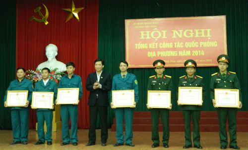 Nhân dịp này, Bộ CHQS tỉnh tặng giấy khen cho 4 tập thể, 9 cá nhân; UBND huyện tặng giấy khen cho 4 tập thể, 10 cá nhân đã có thành tích xuất sắc trong thực hiện nhiệm vụ quốc phòng địa phương và trong phong trào thi đua quyết thắng năm 2014.