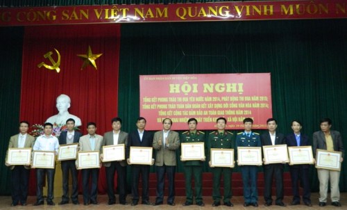 Năm 2014, phong trào thi đua trên các lĩnh vực được duy trì và có bước phát triển, nổi bật là phong trào thi đua “chung sức xây dựng nông thôn mới”; phong trào thi đua yêu nước ở cơ sở gắn với tiếp tục “Học tập và làm theo tấm gương đạo đức Hồ Chí Minh”; phong trào“ xây dựng gia đình văn hóa, cơ quan văn hóa, làng văn hóa ”; phong trào “xây dựng trường học thân thiện học sinh tích cực ”… có bước phát triển tốt. Công tác TĐKT từ huyện đến cơ sở tiếp tục đi vào nề nếp, có sự đổi mới về nội dung và hình thức và ngày càng có nhiều cách làm sáng tạo, phù hợp với tình hình thực tiễn của đơn vị, địa phương khơi dậy tiềm năng, khối đại đoàn kết dân tộc và sức mạnh quần chúng ở cơ cở, thực hiện thắng lợi các nhiệm vụ chính trị được giao. Phong trào thi đua yêu nước đã góp phần quan trọng phát triển kinh tế, đảm bảo an sinh xã hội của huyện. Qua phong trào thi đua đã có nhiều điển hình tiên tiến vượt khó vươn lên trong lao động, sản xuất, học tập, công tác. Trong năm, huyện có 1 cá nhân được Chủ tịch nước tặng huân chương lao động hạng ba, 1 cá nhân, 4 tập thể được Thủ tướng Chính phủ tặng Bằng khen, 1 tập thể được Chính phủ tặng Cờ thi đua, 2 tập thể được UBND tỉnh tặng cờ thi đua; hơn 1.000 tập thể, cá nhân được Chủ tịch UBND tỉnh, Chủ tịch UBND huyện tặng Bằng khen, giấy khen đạt danh hiệu lao động xuất sắc, chiến sỹ thi đua cấp cơ sở, tiêu biểu trong phong trào thi đua.