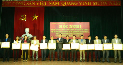Nhân dịp tổng kết, UBND huyện Hiệp Hòa đã khen thưởng 46 tập thể, 85 cá nhân có thành tích xuất sắc trong phong trào thi đua yêu nước năm 2014; 5 tập thể, 8 cá nhân có thành tích xuất sắc trong công tác đảm bảo trật tự ATGT năm 2014; công nhận 28 thôn đạt danh hiệu văn hóa cấp huyện 2 năm 2013- 2014; công nhận 159 thôn, khu phố, 3 xã, thị trấn đạt chuẩn văn hóa nông thôn mới, thị trấn Thắng đạt chuẩn văn minh đô thị năm 2014; công nhận 33 cơ quan, 80 đơn vị, 3 doanh nghiệp đạt chuẩn văn hóa 2 năm 2013- 2014; công nhận 14 cơ quan, 27 đơn vị, 8 doanh nghiệp đạt chuẩn văn hóa năm 2014.