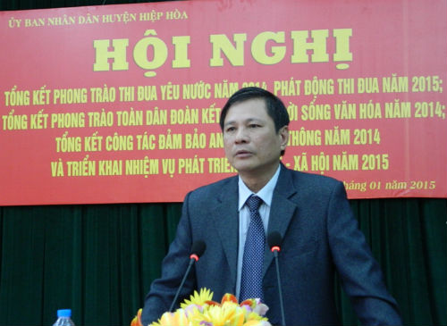 Sáng 29/1, UBND huyện Hiệp Hòa tổ chức hội nghị tổng kết phong trào thi đua yêu nước năm 2014, phát động thi đua năm 2015; tổng kết phong trào toàn dân đoàn kết xây dựng đời sống văn hóa, tổng kết công tác đảm bảo ATGT năm 2014, phương hướng nhiệm vụ năm 2015 và triển khai nhiệm vụ phát triển kinh tế- xã hội năm 2015.