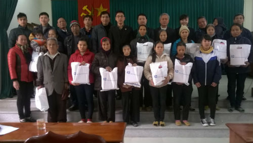 Các hộ nghèo nhận quà.