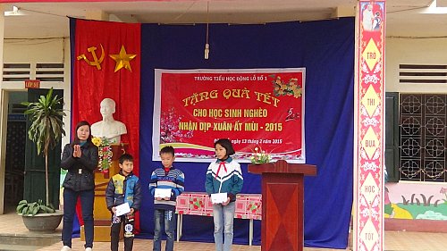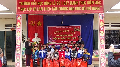 Với 933 học sinh, gia đình các em chủ yếu làm nông nghiệp nên nhiều học sinh có hoàn cảnh khó khăn đặc biệt. Hưởng ứng phong trào “ Tết vì bạn nghèo” năm 2015, gần 1 tháng qua, học sinh toàn trường đã ủng hộ nhiệt tình để động viên các bạn nghèo trong trường đón Tết được vui vẻ. Kết thúc, toàn trường ủng hộ được 3 410 000 đồng để mua quà tặng cho bạn nghèo ăn Tết. Trong số đó có nhiều em đã biết tiết kiệm những khoản chi tiêu khác để ủng hộ từ 10 000 đồng trở lên, điển hình như em Đặng Hoàng Phúc lớp 4A: 60 000 đồng, em Đặng Thị Phương Thảo lớp 3H: 100 000 đồng, em Đặng Thị Lan Anh lớp 3H: 30 000 đồng…Hôm nay, 13/02/2015, Liên đội đã long trọng tổ chức tặng quà cho 21 bạn học sinh có hoàn cảnh gia đình khó khăn đặc biệt hoặc thường xuyên ốm đau nặng với nhiều lời chúc tốt đẹp. Thông qua dịp này, các bạn học sinh trong toàn trường càng thể hiện rõ tình đoàn kết, thân ái, biết giúp đỡ, chia sẻ lẫn nhau trong cuộc sống.