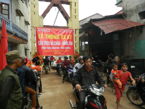 Sáng 17-2, tại xã Hà Châu (Phú Bình), UBND hai huyện Phú Bình, Hiệp Hòa phối hợp với Công ty Cổ phần Xây dựng và Phát triển nhà ở Song Điền tổ chức Lễ thông xe kỹ thuật cầu treo Hà Châu- Đồng Tân.
