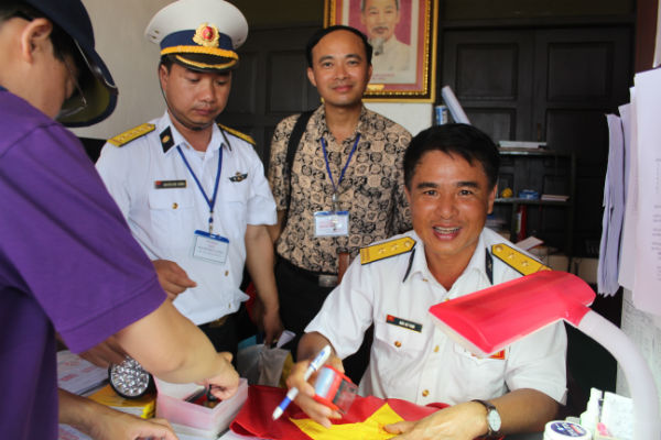 Tôi cũng mải miết tìm “quê” mà chưa thấy. Đi mấy đảo rồi vẫn chưa thấy người Bắc Giang đâu. Cảm giác như là hết… hy vọng. Vậy mà khi đến đảo cuối cùng trong hành trình là An Bang thì tôi lại bất ngờ khi có người bảo: Đảo trưởng Ngô Chí Thực là người quê Bắc Giang đấy! Tôi sững người. Tiếc quá, một là không biết sớm, hai là anh rất bận rộn, nên phải đến lúc cuối buổi làm việc trên đảo, anh “bị” một nhóm người của đoàn công tác ùn ùn kéo vào phòng làm việc của anh để xin chữ ký, tôi mới có cơ hội họi chuyện.