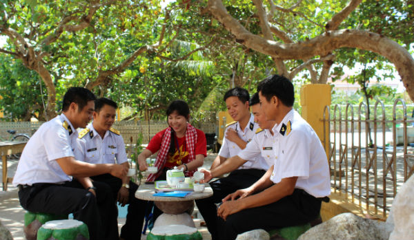 Tôi cứ ấn tượng mãi khi được chứng kiến cuộc gặp mặt và trò chuyện của hai “người quê” với chất giọng đặc trưng Quảng Bình. Thượng úy Lê Thanh Ngự, trưởng xuồng CQ của Ban Kỹ thuật đảo Trường Sa Lớn với anh Lê Quang Toàn, Vụ trưởng, Trưởng cơ quan Đại diện Ban Dân vận Trung ương tại Đà Nẵng có tới mấy cái “cùng”. Hai người đều quê Lệ Thủy (Quảng Bình), ở hai xã cách nhau mỗi con sông Kiến Giang. Nhưng hiện tại thì hai người đều có gia đình riêng ở Đà Nẵng. Vẫn trên đảo Trường Sa Lớn, tôi lại được chứng kiến một cô gái ngồi vui đùa với anh em cán bộ, chiến sĩ phân đội thông tin của đảo. Hóa ra, cô gái này cũng đi tìm đồng hương Hải Dương của cô. “Em cứ tha thiết được gặp đồng hương dù là cùng tỉnh cũng được anh ạ. Không hiểu sao ra đến đảo, mới thấy cái nghĩa “quê hương” nó sâu đậm với em thật nhiều…” – Hồng Hạnh, chuyên viên của Công ty chứng khoán Vndirect bộc bạch. Ở đây, Hồng Hạnh (quê huyện Chí Linh) gặp được những hai “anh quê” là Trung úy Trần Văn Có, nhân viên báo vụ và Thiếu úy Phạm Văn Thanh, thợ sửa chữa hữu tuyến điện (cả hai đều người huyện Gia Lộc). Bên tán cây tra tỏa mát giữa nắng lửa Trường Sa, họ ngồi bên nhau, cô gái rót chè cho các “anh quê” rồi say sưa hát tặng các “anh quê”. Hát xong, họ “cụng ly” bằng chén chè mạn, cười nói ríu ran…