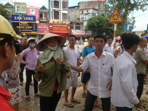 Người phụ nữ đội nón là chị của nạn nhân thứ 2, đang lo lắng cho người thân của mình.