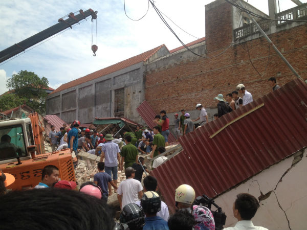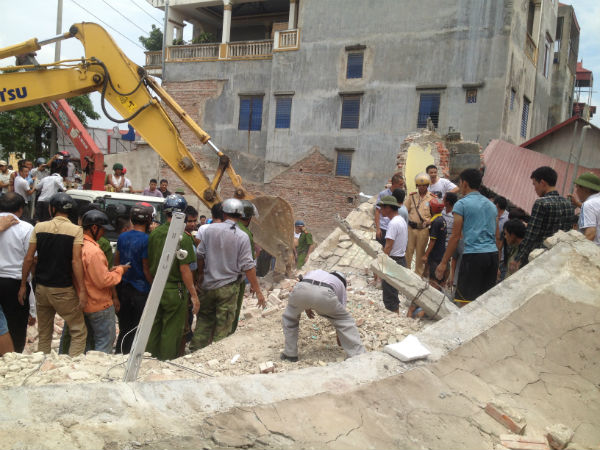 Khoảng 9 giờ ngày 6-7, trên đường 19/5, khu 3, thị trấn Thắng, huyện Hiệp Hòa (Bắc Giang) ngôi nhà 2 tầng bị đổ sập, hai người bị mắc kẹt đã được giải cứu kịp thời. Theo một số người dân xung quanh và đang lưu thông trên đường chứng kiến sự việc cho biết: Vào khoảng thời gian trên, có tiếng đổ ầm khi gần như toàn bộ ngôi nhà hai tầng đổ sập xuống.