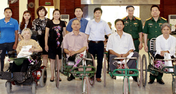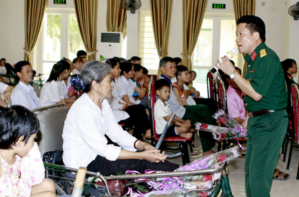 Nghệ sĩ Ưu tú Trần Tựa hát giao lưu với các thương, bệnh binh và Đại diện đoàn công tác thăm hỏi, tặng quà các thương, bệnh binh