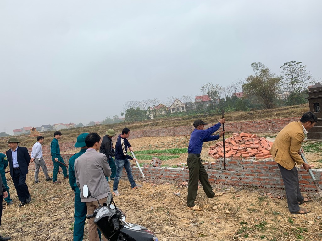 Trong các trường hợp vi phạm bị xử lý cưỡng chế bắt buộc được UBND xã Mai Trung thực hiện quyết liệt theo chỉ đạo của UBND huyện Hiệp Hòa như trường hợp của hộ ông Nguyễn Văn Tòng; các hộ dòng họ Nguyễn do ông Nguyễn Văn Hùng là đại diện (thôn Xuân Giang xã Mai Trung) ; hộ ông Nguyễn Văn Thục (thôn Trung Hưng)các hộ này có vi phạm là xây móng bằng gạch xung quanh thửa đất nông nghiệp để đặt mộ.