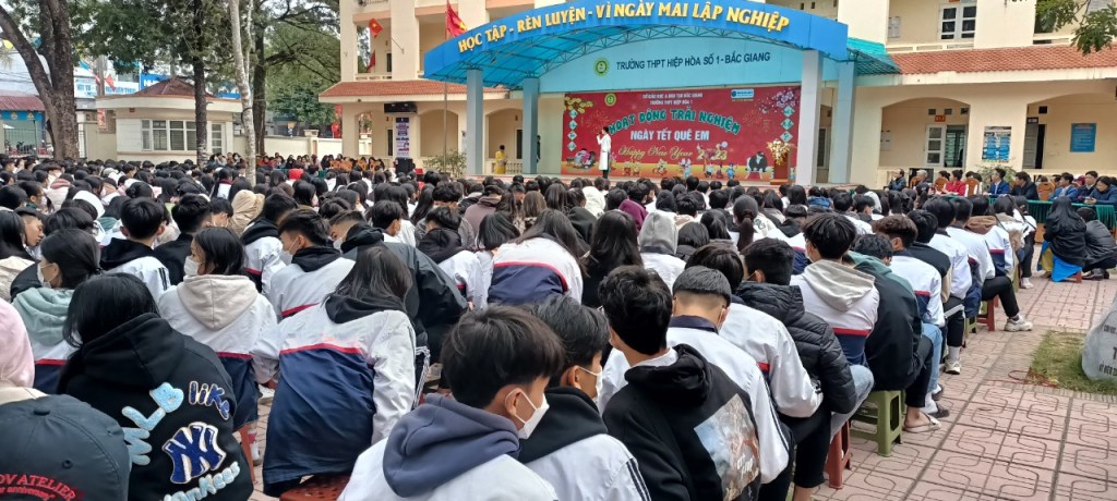Chiều ngày 17/01/2023, trường THPT Hiệp Hoà số 1 phối hợp với Học viện đào tạo Worldlink tổ chức Hoạt động trải nghiệm văn hoá Tết cho học sinh trong trường với chủ đề: NGÀY TẾT QUÊ EM. Đến dự với chương trình, về phía học viện Worldlink có ông Nguyễn Xuân Tiền – Giám đốc truyền thông hệ thống Học viện đào tạo Worldlink cùng các thầy cô giáo và nhân viên trong học viện Worldlink khu vực Bắc Giang; về phía cha mẹ học sinh có bác Dương Văn Đoàn đại diện cho Hội cha mẹ học sinh nhà trường; về phía nhà trường có thầy Dương Mạnh Trí – Bí thư Chi bộ, Hiệu trưởng nhà trường cùng các thầy cô trong Ban giám hiệu, toàn thể các thầy giáo, cô giáo và hơn 1500 học sinh trong trường có mặt đông đủ. 14h.00 phút, chương trình trải nghiệm được bắt đầu. Sau chương trình văn nghệ “Chào Xuân Quý Mão 2023” với các tiết mục văn nghệ đặc sắc do CLB Văn nghệ Hiệp Hoà 1 và Học viện đào tạo Worldlink chuẩn bị và biểu diễn; buổi hoạt động trải nghiệm diễn ra với nhiều hoạt động phong phú, đa dạng và hấp dẫn như: trưng bày gian hàng phục vụ Tết; thực hành gói bánh chưng; tham gia gian hàng trò chơi dân gian, tham gia gian hàng Worldlink… Các hoạt động đều thu hút đông đảo học sinh tích cực, hào hứng tham gia. Cũng tại buổi trải nghiệm, Học viện đào tạo Worldlink phối hợp với nhà trường đã trao 150 xuất học bổng và 10 xuất quà Tết cho các em học sinh trong trường. Đây là những món quà quý giá, kịp thời động viên các em tiếp tục cố gắng tròn học tập và rèn luyện hơn nữa. Sau thời gian một chiều, chương trình Hoạt động trải nghiệm văn hoá Tết của trường THPT Hiệp Hoà số 1 đã diễn ra an toàn và thành công rực rỡ. Các nhóm trải nghiệm đã đem đến sân trường những gian hàng trưng bày phục vụ Tết nhiều màu sắc, đẹp mắt và chuẩn hương vị Tết cổ truyền của dân tộc. Đặc biệt, thông qua việc tham gia quá trình chuẩn bị cho buổi hoạt động trải nghiệm, các em học sinh đã được tiếp cận, hình thành các kĩ năng học tập theo Khung kĩ năng thế kỉ 21 như: kĩ năng cộng tác, kĩ năng sử dụng Công nghệ thông tin trong học tập, kĩ năng giao tiếp, kĩ năng giải quyết vấn đề trong thế giới thực,…và được Ban giám khảo đánh giá cao. Kết quả cuối cùng, Ban tổ chức đã trao 01 giải Nhất cho nhóm trải nghiệm lớp 12A1, 02 giải Nhì cho nhóm trải nghiệm của các lớp 10A10 và 11A1, 03 giải Ba và 04 giải Khuyến khích.