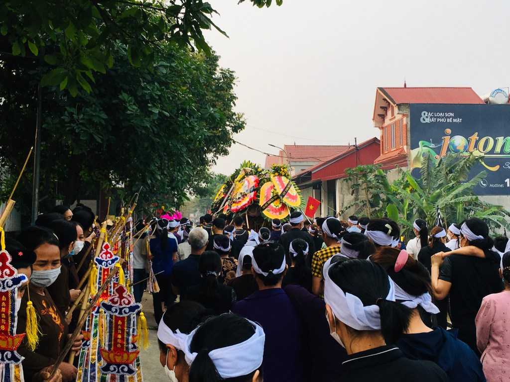 Lễ viếng, lễ truy điệu và an táng chồng, cha chúng tôi đã được tổ chức trọng thể theo nghi thức truyền thống tại quê nhà ( Thôn San xã Mai Đình)