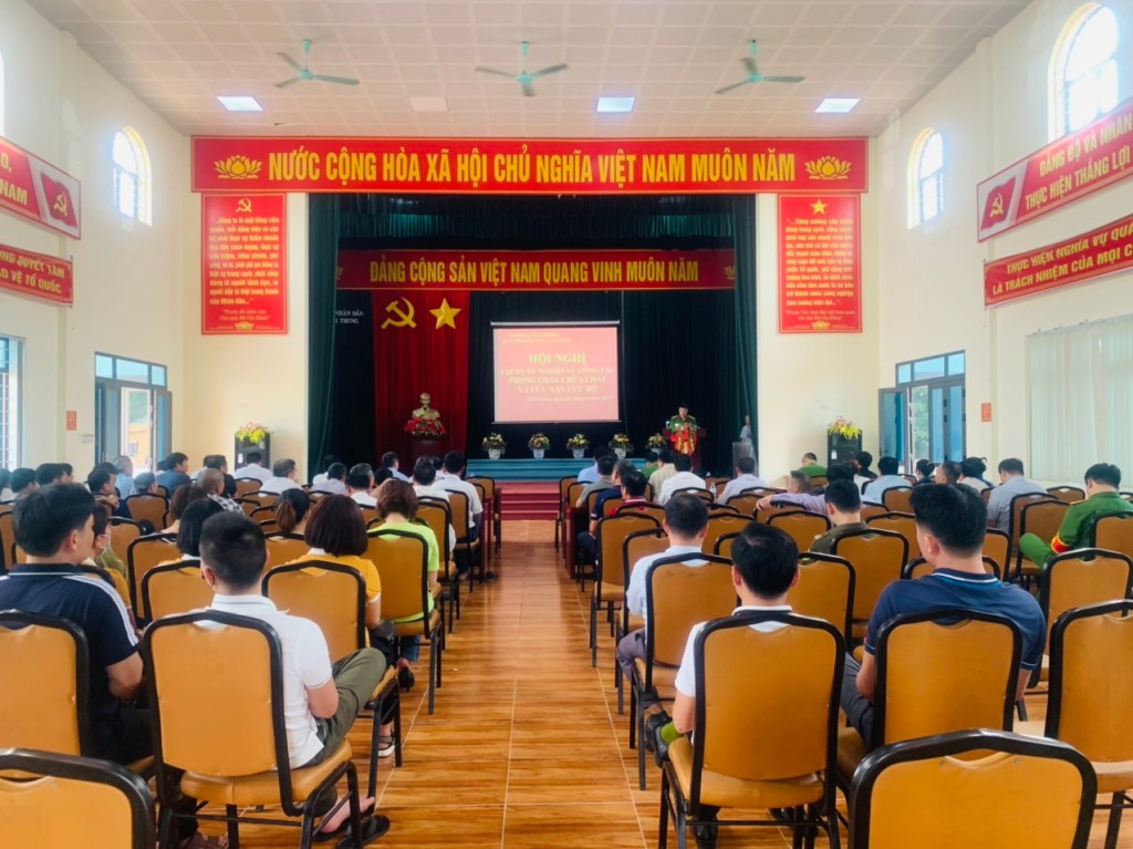 Đồng chí Nguyễn Văn Tụ, Bí thư Đảng ủy- Chủ tịch HĐND xã ; đồng chí Ngô Văn Phương Chủ tịch UBND xã; các đồng chí TT MTTQ xã, các đoàn thể xã; cán bộ chiến sỹ Công an xã Mai Trung dự và chỉ đạo hội nghị; đồng chí Trung tá Nguyễn Văn Bảo Đội trưởng đội cảnh sát PCCC&CNCH Công an huyện Hiệp Hòa trực tiếp tập huấn tại hội nghị.