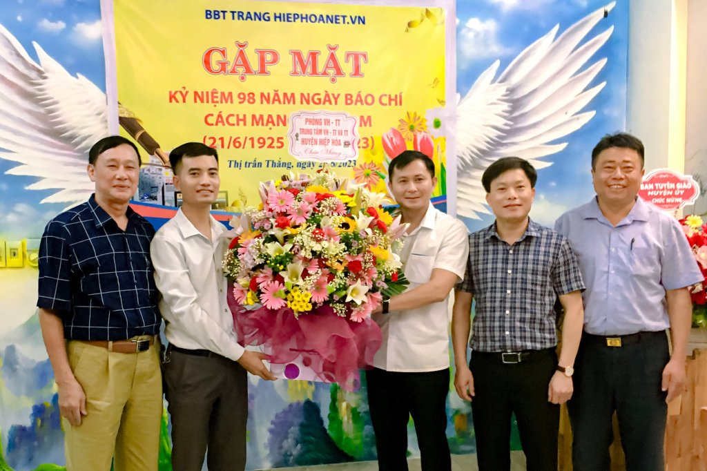 Đến thăm, tặng hoa chúc mừng có các đồng chí Phạm Văn Nghị TV Huyện ủy – Phó chủ tịch UBND Huyện; đồng chí Mẫn Quý Yên – Chánh văn phòng Hội đồng nhân dân – UBND Huyện; Nguyễn Quang Chính Phó trưởng ban Thường trực Ban Tuyên Giáo Huyện uỷ; Nguyễn Ngọc Phương Trưởng phòng Văn hóa TT; Ngô Văn Nam – Giám đốc Trung tâm văn hóa TT thể thao , lãnh đạo Câu lạc bộ chung một tấm lòng huyện Hiệp Hoà. cùng một số cán bộ nhân viên trung tâm văn hóa thể thao huyện.; Chủ tịch Hội đồng quản trị- Giám đốc, PGĐ-Trưởng phó ban, Ban biên tập Hiephoanet.vn; Nguyên Giám đốc, cán bộ nhân viên Công ty Hiephoa net các thời kỳ.