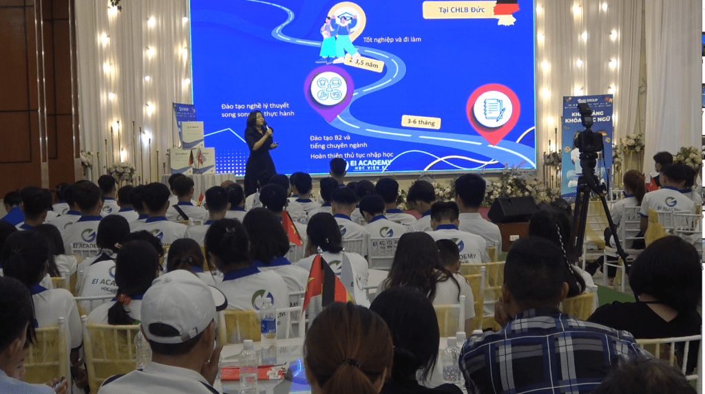 Sau khi nhận áo đồng phục, làm các thủ tục hành chính các em được tham giao giao lưu với các bạn ở các tỉnh thành, dự khai giảng nghe phát biểu của lãnh đạo tập đoàn, được các thầy cô giáo chia sẻ, được đặt các câu hỏi về du học và việc làm tại Đức, được giải trình và giới thiệu tìm hiểu đất nước Đức tươi đẹp, được chat gặp gỡ các anh chị đang học tập tại Đức qua màn hình, được nhận quà trả lời câu hỏi thông minh…