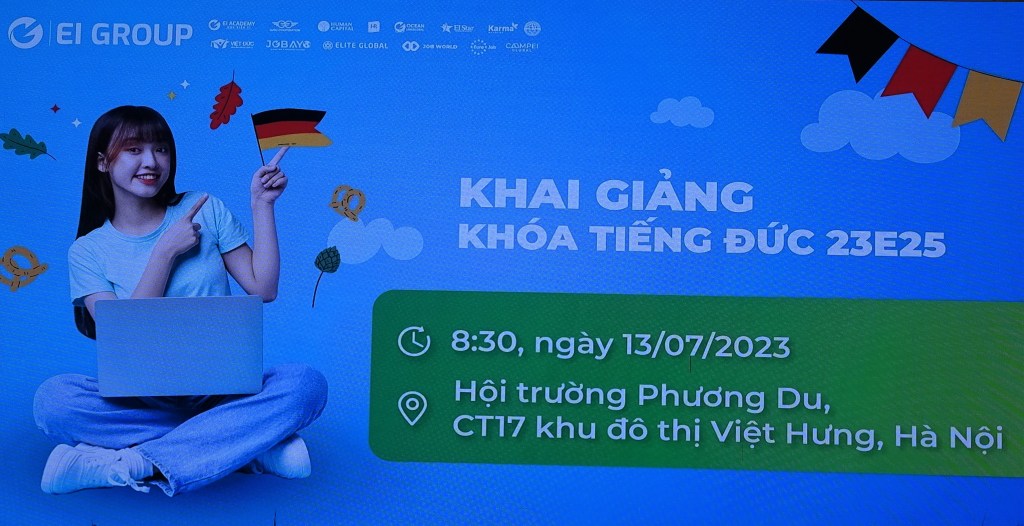 Sáng 13/7/2023 Tập đoàn EI GROUP Trang trọng tổ chức khai giảng khoá học tiếng Đức 23E25 tại Hà Nội;